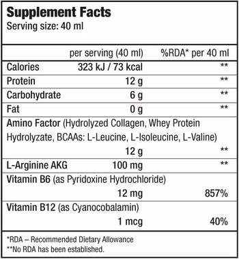 Рекомендованная дозировка на одну порцию – 1 ложка (25 мл). Принимайте по одной порции перед тренировкой, во время и после нее. В дни отдыха – в любое время. Хорошо взболтайте перед употреблением.