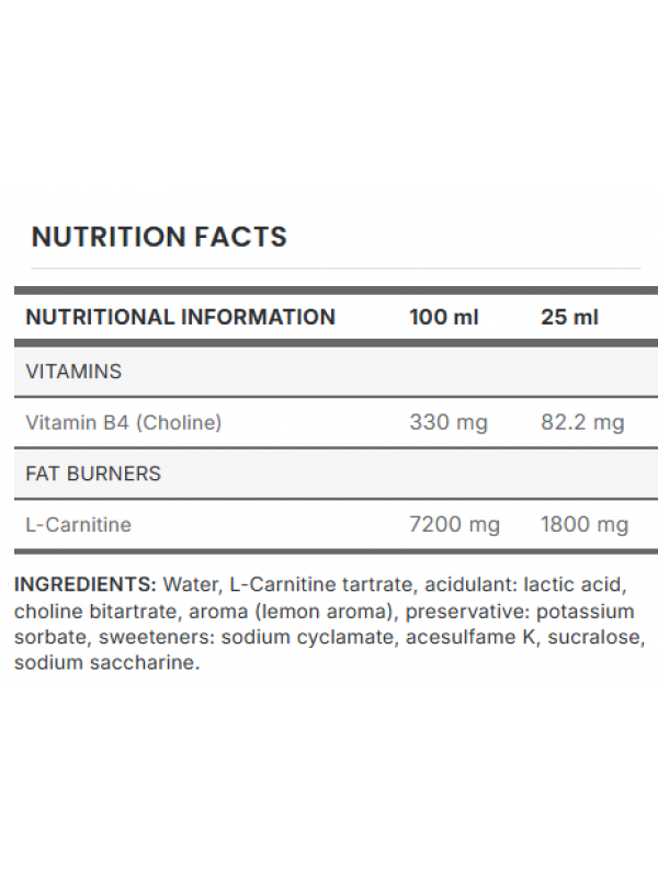 • Небольшие бутылочки с L-карнитином просты в использовании и содержат питательное вещество L-карнитин, способствующее сжиганию жира в организме.