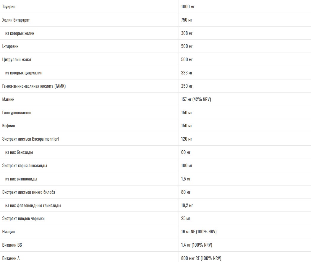 • Содержит кофеин и другие компоненты, которые стимулируют центральную нервную систему.