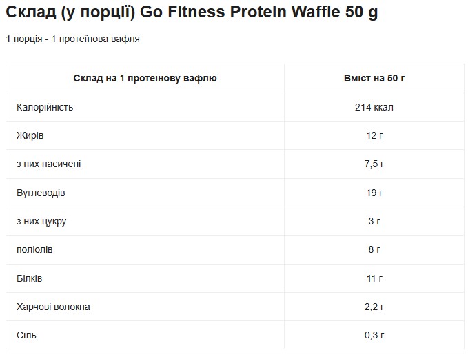 Ви можете купити Go Fitness Protein Waffle 50 g у Дніпрі чи Україні онлайн, або ж у наших стаціонарних магазинах, а також перейти у категорію здорове харчування та доповнити кошик продуктів іншими корисними ласощами.