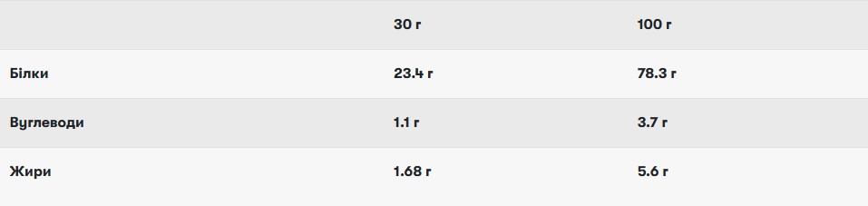 • Контроль над складом: Лише 1.68 г жирів і 1.1 г вуглеводів на порцію – чудовий вибір для тих, хто слідкує за дієтою.