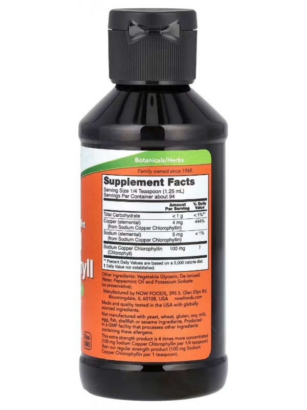 Жидкий Хлорофилл NOW Liquid Chlorophyll - этот микроэлемент очень важен для фотосинтеза, характеризуется антиоксидантными свойствами, в частности нейтрализует свободные радикалы. Это вещество поддерживает процессы очищения и вывода токсинов, поэтому может применяться как внутреннее дезодорирующее средство.