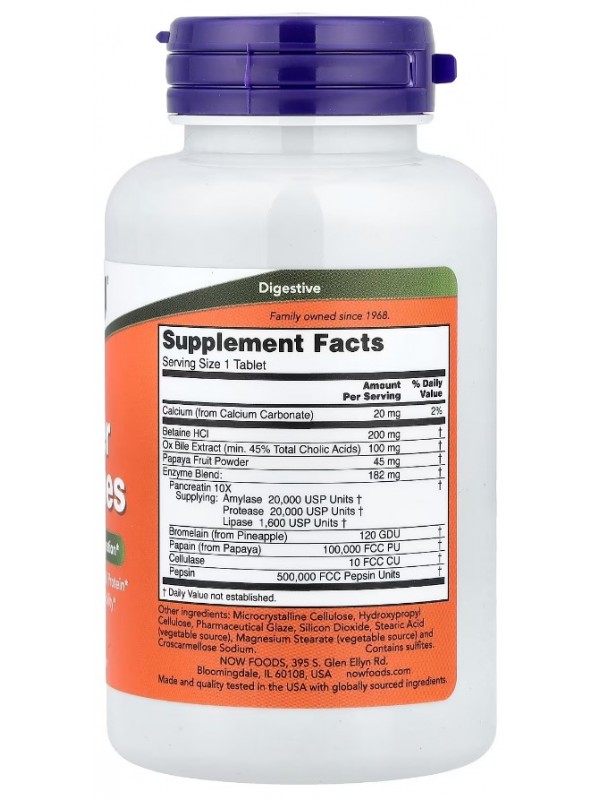 NOW Super Enzymes - это универсальная смесь ферментов, поддерживающая здоровое пищеварение. Добавка Super Enzymes, содержащая бромелаин, бычьую желчи, панкреатин и папаин, помогает оптимизировать расщепление жиров, углеводов и белка.