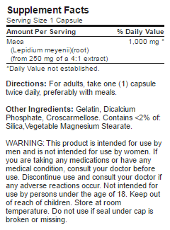 Состав и инструкция Puritan's Pride Maca 1000mg, 60 капс,