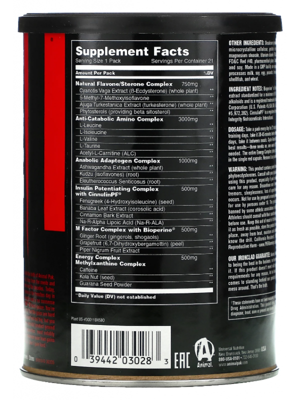 Состав и инструкция Тестобустеры Universal Nutrition Animal M-Stak, 21 шт,