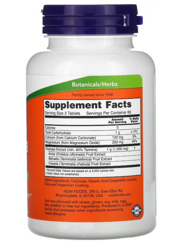 Состав NOW Triphala 500mg 120 таб:
