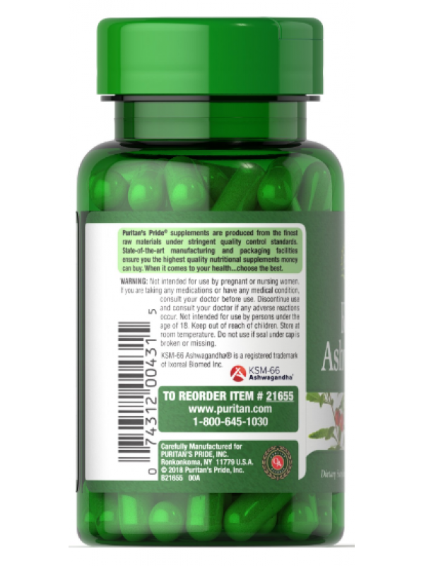 Puritan's Pride KSM-66 — это запатентованный экстракт ашваганды высокой концентрации, произведенный с использованием уникального процесса. Этот клинически изученный ингредиент помогает при эпизодическом стрессе, способствует спокойному расслабленному настроению и поддерживает ваше благополучие.