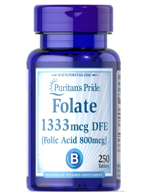 Фолиевая кислота Puritan's Pride Folic Acid 800 mcg (250 таб.) – пищевая добавка от известного американского бренда для профессиональных атлетов, беременных и кормящих грудью женщин, активных людей. В ее основе – фолиевая кислота, необходимая для нормальной выработки ДНК и РНК. Употребление продукта существенно уменьшает риск рождения ребенка с патологиями. Повышает жизненный тонус и помогает поддержать оптимальный уровень гомоцистеина.