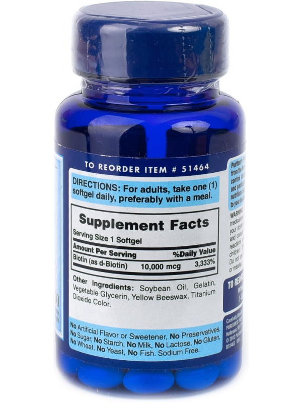 Состав и инструкция Puritan's Pride Biotin 10000 mcg (100 капс)